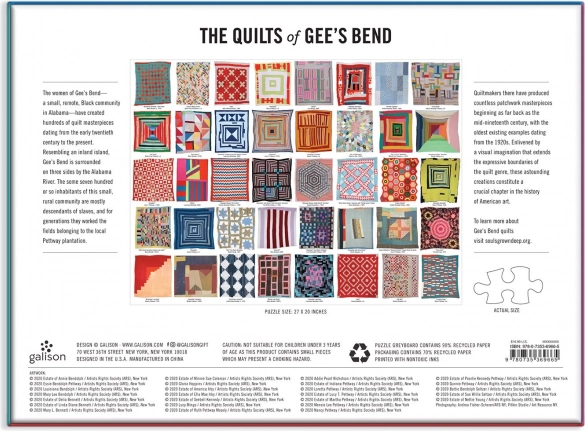Ponorte sa do vizuálne strhujúcej kolekcie patchworkových vzorov inšpirovaných tvorbou žien z Gee’s Bend v Alabame. Toto 1000-dielikové puzzle ponúka kombináciu bohatých farieb a geometrických motívov, ktoré vytvárajú jedinečný obraz s vysokou dekoratívnou hodnotou.