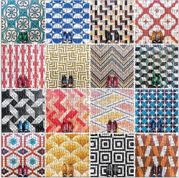 Objavte elegantnú výzvu s puzzle GALISON, ktoré prináša koláž 16 dekoratívnych vzorov podláh. Obsahuje 500 dielikov, je vyrobené z recyklovaného papiera a potlačené netoxickými atramentmi. Vďaka prémiovej kvalite a presnému výseku do seba dieliky perfektne zapadajú a podporujú logické myslenie aj jemnú motoriku.