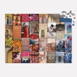 Puzzle zobrazuje farebnú paletu kultúrnych prvkov Indie. Užite si skladanie každého dielika tejto úchvatnej mozaiky.