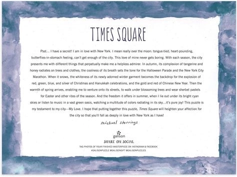 Galison puzzle Times Square vás prenesie do srdca New Yorku vďaka detailným ilustráciám, ktoré zachytávajú kúzlo mesta v rôznych ročných obdobiach. Toto puzzle: