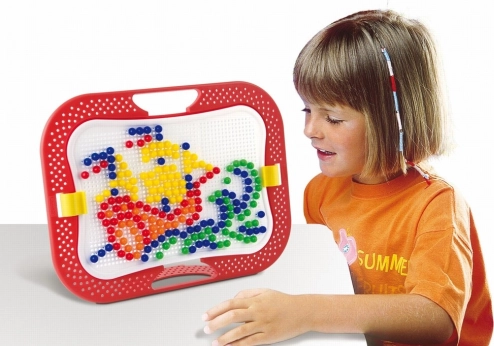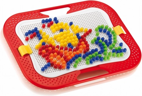 Mozaiky u detí rozvíjajú jemnú motoriku, tvorivosť a fantáziu. Skladajú sa z kufríka, perforovanej hracej dosky a farebných kolíčkov s hlavičkami rôznych farieb, priemerov a tvarov. Pomocou týchto kolíčkov, ktoré sa zasadzujú do otvorov v hracej doske, vytvárajú deti rôzne obrázky alebo vzory. Po skončení hry možno všetko uložiť do kufríka, ktorého veko po zaistení poistkou tvorí samotná hracia doska. Vyrobené z plastov špičkovej kvality. Hlavné vlastnosti: rozvíja jemnú motoriku, tvorivosť a fantáziu, obsahuje 300 gombíkov s priemerom 10 mm, praktický kufrík na uloženie