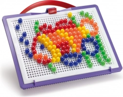 Zábavná a praktická mozaika do ruky pre malých tvorcov: prenosný kufrík s perforovanou doskou a 150 farebnými kolíkmi s priemerom 10 mm rozvíja jemnú motoriku, tvorivosť a fantáziu. Vďaka šikovnému dizajnu sa všetko po hraní uloží do kufríka a veko slúži ako hracia doska.