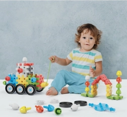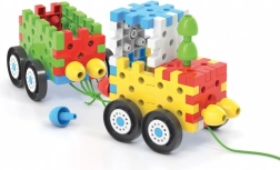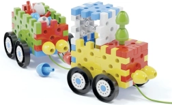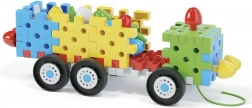 Stavajte z dielikov a kolíkov autíčka, domčeky aj stromy! Táto inovatívna stavebnica obsahuje vzájomne prepojiteľné ploché 3D dieliky a veľké kolíky rôznych farieb, vďaka čomu môžu aj malé deti skladať rôzne autíčka, domy, veže, stromy a množstvo ďalších vecí. Medzi celkovo 62 prvkami stavebnice je aj 8 koliesok na podvozky autíčok a 3 šnúrky, na ktorých možno autíčka ťahať. Okrem rôznych autíčok umožňuje stavebnica vytvárať aj rozličné plošné i trojrozmerné štruktúry, čím u detí od 2 do 6 rokov precvičuje a rozvíja jemnú motoriku, koordináciu ruka–oko aj priestorovú orientáciu a zároveň podporuje ich kognitívny vývoj. Obsah balenia: 20 vzájomne prepojiteľných plochých 3D dielikov, 16 vzájomne prepojiteľných kolíkov, 8 koliesok, 3 šnúrky na ťahanie autíčok. Hlavné vlastnosti: rozvíja jemnú motoriku, tvorivosť, fantáziu a logicko-kombinačné myslenie; balenie obsahuje 52 dielikov; pre deti od 2 rokov. Rozmery balenia: 40×34×9 cm