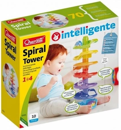 Quercetti Spiral Tower je skvelá hračka na rozvoj motorických zručností a zábavu. Deti od 1 do 4 rokov si môžu stavať vysoké špirálové veže z farebných dielov a sledovať, ako guličky s hrkajúcimi korálikmi rolia nadol. Táto hračka upúta ich pozornosť a podporí koordináciu rúk a očí.