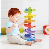 Spiral Tower obsahuje veľké a farebné časti, ktoré sú bezpečné pre malé deti. Vďaka tomu sa môžu bez obáv venovať hraniu a rozvoju zmyslového vnímania.