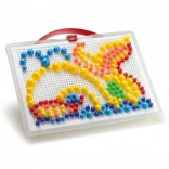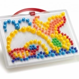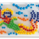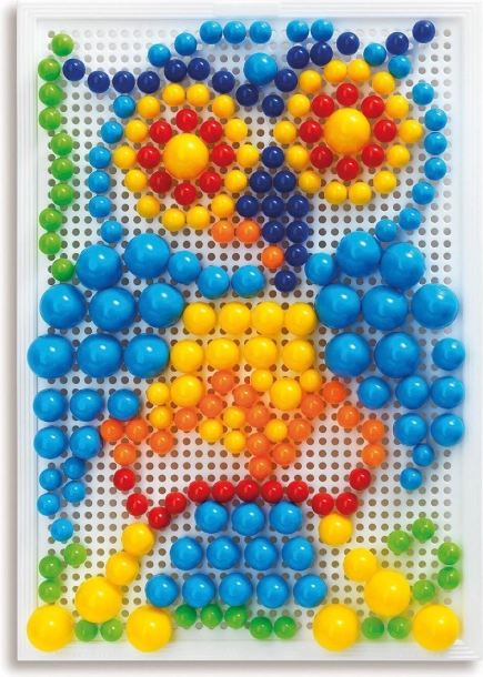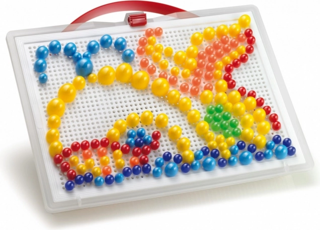 Vytvárajte úžasné mozaiky a vzory s pestrými kolíčkami umiestnenými na pevnej bielej doske.