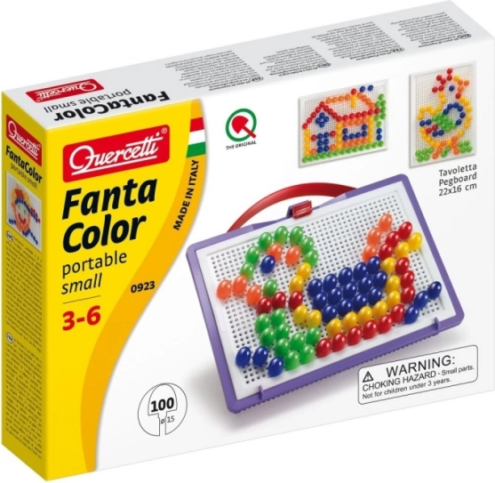 Quercetti Fanta Color prenosná mozaika je inovatívna hračka, ktorá prináša nielen zábavu, ale aj vzdelávaciu hodnotu. Pomocou tejto sady môže vaše dieťa vytvárať rôzne obrázky a vzory, čím rozvíja svoju kreativitu a jemnú motoriku. Kolíčky v rôznych farbách sa ľahko zasadzujú do otvorov na doske, čo podporuje koncentráciu a trpezlivosť.