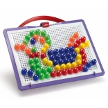 Quercetti Fanta Color prenosná mozaika je vzdelávacia hračka pre deti od 3 do 6 rokov, ktorá rozvíja jemnú motoriku a tvorivosť pomocou farebných kolíčkov a perforovanej hernej dosky.
