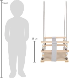 S našou drevenou hojdačkou premeníte akýkoľvek priestor na miesto plné radosti a zábavy. Jednoduché nastavenie výšky vďaka prevliekacím karabínam umožňuje prispôsobenie podľa potrieb vášho dieťaťa. Tento elegantný škandinávsky dizajn sa skvele hodí ako do interiéru, tak exteriéru.