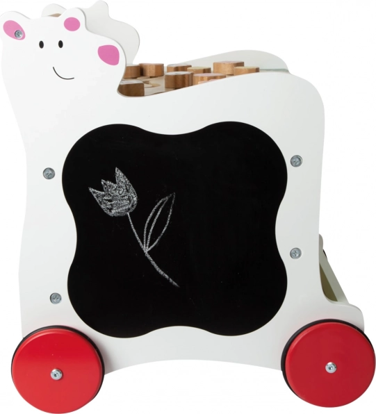 Integrovaná tabuľka na kreslenie kriedou podporuje fantáziu, prvé písanie aj jemnú motoriku. Ľahko sa zotiera a láka k ďalšiemu tvoreniu každý deň.
