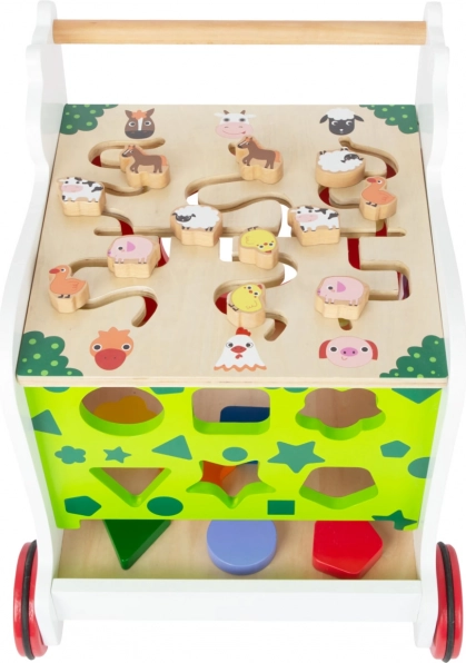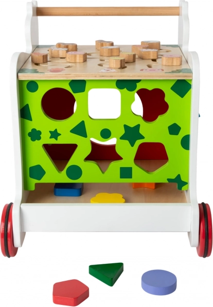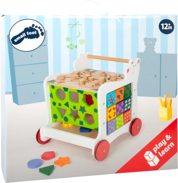 Objavujte svet krôčik po krôčiku. Toto odolné chodítko z kombinácie preglejky a masívneho dreva pomáha deťom bezpečne trénovať rovnováhu a koordináciu, zatiaľ čo integrované aktivity – vkladačka so 6 dielikmi, bludisko a otočné kocky – posilňujú zrakové vnímanie aj logické myslenie. Tabuľka na kreslenie kriedou pridáva kreatívny rozmer učenia a hry.
