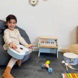 Rozbehnite domáce koncerty s týmto štýlovým detským bubienkom! Vďaka nastaviteľnému bavlnenému popruhu, tichým paličkám so zvukovo tlmiacimi krytmi a pevnej drevenej konštrukcii je ideálny na prvé kroky do sveta hudby. Podporuje rytmus, koordináciu ruka–oko aj jemnú motoriku a zároveň vyzerá skvelo v detskej izbe.
