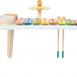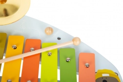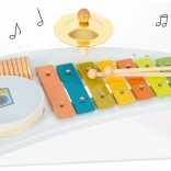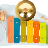 Xylofón, činel, hrkálka a odnímateľný bubon tvoria kompaktný set, ktorý deti motivuje objavovať rôzne zvuky a rytmy.