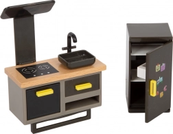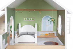 Tento moderný domček pre bábiky prináša otvorený koncept bývania, v ktorom deti objavia kuchyňu s jedálenským kútom, spálňu, kúpeľňu a veľkú terasu s posedením. Vďaka otvorenej strane je hra prístupná spredu a pohodlne si ju užije aj viac detí naraz. Svetlá fasáda a tlmené farby skvele zapadnú do každého interiéru.