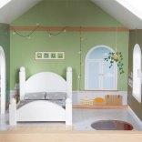 Súčasťou je 8 kusov nábytku a praktické detaily pre autentickú hru: otvárateľná toaleta, kuchynské skrinky a chladnička s dvierkami i zásuvky. Textilné vankúše a obliečky dodajú spálni útulnosť, zatiaľ čo točité schodisko prepája dve poschodia s premysleným interiérom a plexi stenou sprchy.