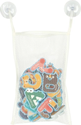 Hračka podporuje kreativitu a učenie formou hry: deti skladajú prvé slová, triedia farby, počítajú a trénujú koordináciu oko–ruka. Vďaka praktickej sieťke s prísavkami budete mať všetko vždy poruke a kúpeľňa zostane uprataná.