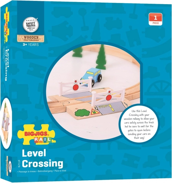 Vyrobená z kvalitných a zodpovedne získaných prírodných materiálov, táto sada podporuje predstavivosť, obratnosť a koordináciu u detí. Železničný priechod má sklopné závory, ktoré sa dokonale hodia k vláčkodráham značky Bigjigs Rail, ale tiež je možné ho kombinovať so všetkými ďalšími drevenými vláčkodráhami na trhu.