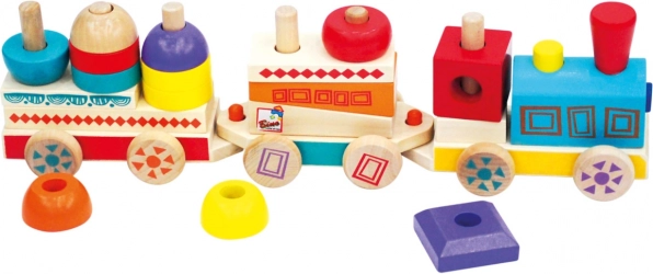 Pestrofarebný drevený vláčik v „MAXI“ veľkosti je zároveň ťahacia hračka a stavebnica. Skladaním vagónikov z kociek rôznych tvarov môžu najmenší rozvíjať fantáziu a motorické zručnosti. Vyrobené z odolného masívneho dreva. Hlavné vlastnosti: 3 podvozky a 18 rôznych kociek, MAXI veľkosť, odolné drevené prevedenie