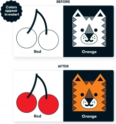 Kúzelné čítanie do vane od značky Mudpuppy premení každé kúpanie na radostný objav. Stačí knižku ponoriť do vody a čiernobiele ilustrácie sa zmenia na žiarivo farebné obrázky. Deti sa tak hravou formou učia farby a vnímajú zmeny, ktoré voda prináša.