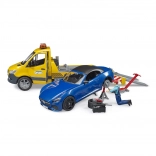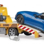 Odťahové vozidlo BRUDER na motíve MB Sprinter zaujme detailným spracovaním a bohatou funkčnou výbavou. Deti poteší maják so svetlom a zvukom, realistická rampa s výsuvnými lyžinami a zakladacími klinmi aj otvárateľné dvere a bočné skrinky. Súčasťou je športový kabriolet s odnímateľnou strechou a vymeniteľnými kolesami.