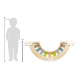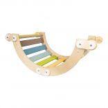 Vďaka ľahkej manipulácii, ktorú zabezpečujú koncové prvky opatrené kolieskami, je hojdačka flexibilná a variabilná. Môže byť použitá samostatne alebo ako súčasť veľkej prekážkovej dráhy s ďalšími prvkami série Small Foot Dobrodružstvo.