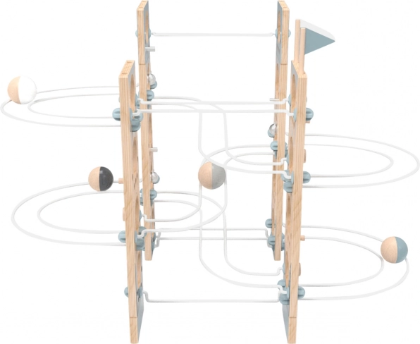 Materiály hračky obsahujú odolnú preglejku a guličky z masívneho dreva, ktoré svojím škandinávskym a prírodným vzhľadom štýlovo doplnia akúkoľvek detskú izbu. Táto dráha je ideálnym nástrojom pre rozvoj detskej kreativity a jemnej motoriky.