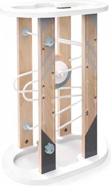Otáčajte dráhou ako s presýpacími hodinami a zažite nekonečnú jazdu! Nechajte deti objavovať fascinujúcu prácu magnetizmu, ktorá bráni neposednému disku vypadnúť! Konštrukcia hračky využíva kovové a plastové spojovacie prvky, pomocou ktorých možno dráhu v prípade potreby ľahko zostaviť aj rozobrať a uložiť. Vďaka robustným základným dielom z odolnej preglejky je hračka pevná, stabilná a odolná. Svojimi škandinávskymi a prírodnými odtieňmi štýlovo doplní detskú izbu. Dodáva sa s detailným návodom na zostavenie. Hlavné vlastnosti: dráha s kotúčom, jednoduché zostavenie a rozoberateľnosť, robustné a odolné drevené prevedenie