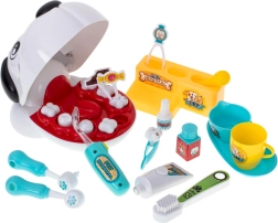 Sada zahŕňa kefku na zuby, zrkadlo, dosku na príslušenstvo a ďalšie nástroje pre realistické hranie.
