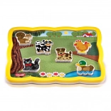 Druhá strana tabuľky ponúka voľnú ilustrovanú plochu, na ktorej môžu deti hrať svoje vlastné príbehy s použitím magnetiek. Dieliky sú obojstranne potlačené, široké a mäkké, ideálne pre malé ručičky. Celá sada je vyrobená z kvalitného a odolného plastu, ktorý je bezpečný pre deti.