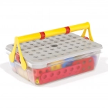 Všetky diely uložíte do pevného boxu s rukoväťou. Perforované veko slúži ako stavebná plocha – ideálne na doma aj na cesty.