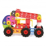 Skrutky, matice a dierované doštičky sa ľahko spájajú a držia. Deti si postavia autá, traktory, žeriavy aj vlastné modely – jednoducho a bezpečne.