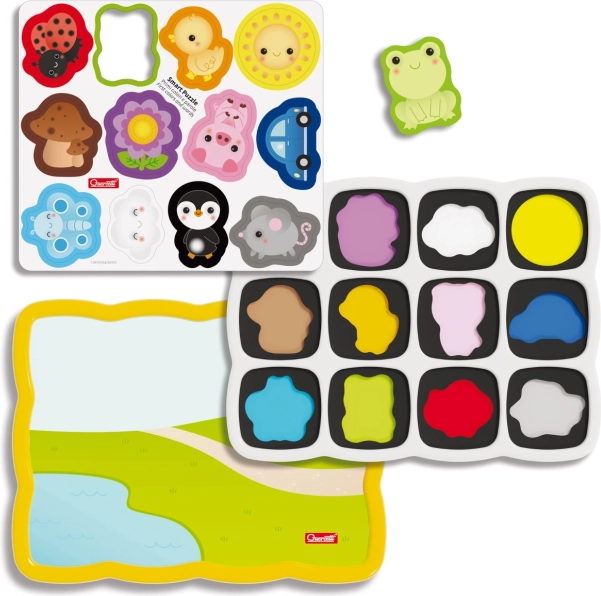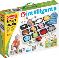 Quercetti Smart Puzzle Magnetico je ideálna hračka pre najmenšie deti, ktorá je nielen zábavná, ale aj vzdelávacia. Táto hravá sada, určená pre deti od 12 mesiacov, obsahuje tabuľku s 12 magnetickými dielikmi, ktoré sa dajú ľahko zasunúť do pripravených otvorov, čím sa podporuje rozpoznávanie tvarov a farieb.