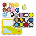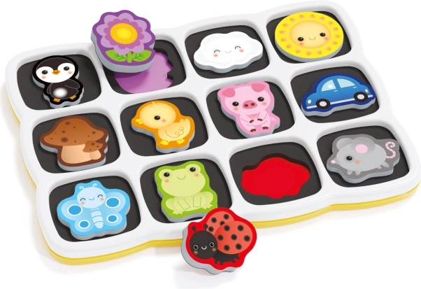 Obsahuje 12 pestrých magnetických dielikov, ktoré pomáhajú deťom učiť sa farby a tvary zábavným spôsobom.