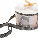 Praktický, dĺžkovo nastaviteľný popruh dovolí deťom hrať aj pri chôdzi. Ľahko sa prispôsobí postave dieťaťa a drží bubienok na mieste.
