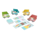 Obsahuje farebné karty a vozy, ktoré povzbudia detskú predstavivosť a učia deti rozpoznávať vzory a farby.