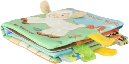 Objavte kúzlo učenia s touto mäkkou detskou knižkou plnou interaktívnych prvkov. Podporuje senzorický rozvoj vďaka rôznym textúram, farebným štítkom a plyšovej ovečke.