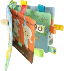 Knižka sa skladá zo štyroch látkových listov, ktoré obsahujú krátky príbeh v angličtine, čo pomáha zoznámiť deti s cudzím jazykom už od ranného veku.