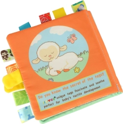 Šuštiace stránky, pískajúce prvky a plyšová ovečka poskytujú interaktívnu zábavu a učia deti novým zručnostiam.