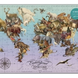 Puzzle Mapa ohrozených druhov vás pozýva k detailnému objavovaniu ilustrácií, ktoré zobrazujú nebezpečne ohrozené druhy z rôznych kontinentov. Každý dielik tohto prémiového kvalitného puzzle dokonale pasuje k ostatným, čo z neho robí ideálny darček pre fanúšikov skladania puzzlí.