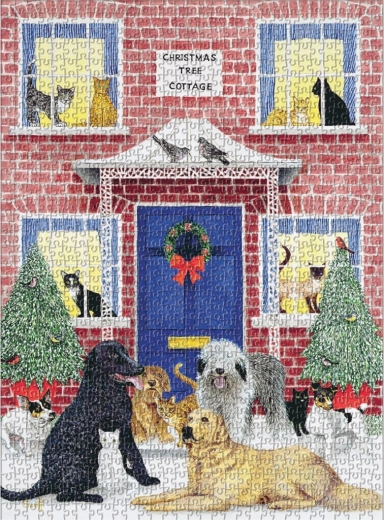 Motív „Christmas Tree Cottage“ s hravými psíkmi a mačkami prináša do domova sviatočnú atmosféru a radosť zo skladania.