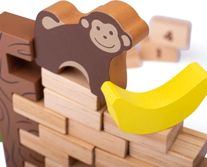 Objavte múdru hračku, ktorá deti baví aj učí. Drevená motorická hra Padajúca džungľa kombinuje napínavé vytláčanie dielikov so zábavným sčítaním bodov. Cieľom je nezhodiť múr a zároveň získať čo najviac bodov z očíslovaných tehličiek. Prírodný drevený dizajn a hravé motívy opičky a banánu lákajú k opakovanému hraniu.