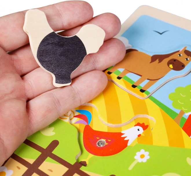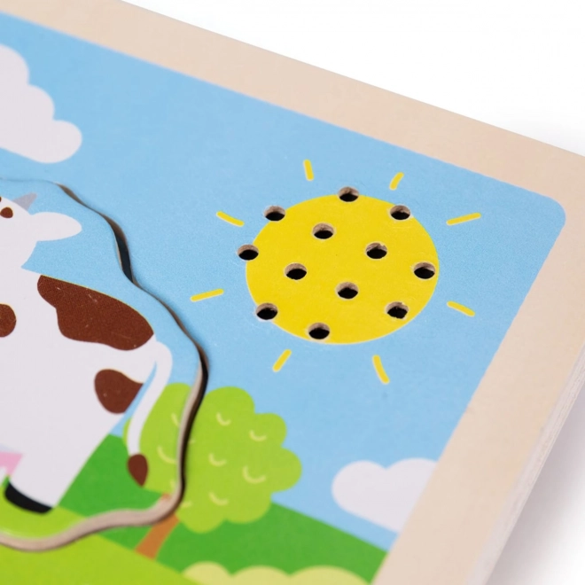Drevená vkladačka zvuková Farma je navrhnutá tak, aby nielen bavila, ale aj vzdelávala. Drevené dieliky majú prispôsobenú veľkosť a tvary pre malé detské ručky, sú príjemné na dotyk a pomáhajú stimulovať hmat. Pestré farby a rozkošné zvieracie tváre ľahko zaujmú pozornosť detí. Produkt je vyrobený z kvalitného dreva, ktoré je získané zodpovedne a ošetrené nezávadnými farbami.
