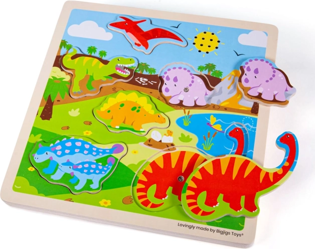 Vkladačka Dinosaury motivuje deti k učeniu zábavným spôsobom. Drevené dieliky sú ergonomicky navrhnuté pre ľahkú manipuláciu malými ručičkami. Ich pestré farby a roztomilé zvukové efekty okamžite zaujmú pozornosť detí.