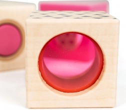 Táto sada zmyslových kociek je navrhnutá na prirodzené objavovanie a podporu raného vývoja. Rôzne povrchy, farby a zvukové prvky podnecujú detskú zvedavosť, posilňujú koordináciu oko–ruka a jemnú motoriku. Vďaka kompaktným rozmerom 4 × 4 × 4 cm sa kocky ľahko držia aj tým najmenším.