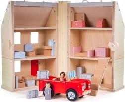Tento starostlivo spracovaný rozkladací domček otvára deťom rozkošný miniatúrny svet, kde môžu vytvárať vlastné príbehy, rozvíjať fantáziu, sociálne zručnosti aj jemnú motoriku. Interiér sa dá ľahko prestavovať – nábytok možno ľubovoľne presúvať a figúrky uvádzať do rôznych situácií, vrátane jázd v priloženom autíčku.