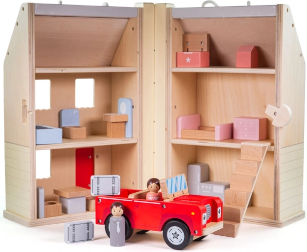 Súčasťou je 13 kusov nábytku, 2 drevené figúrky a červené autíčko pre ešte viac príbehov a interakcie.