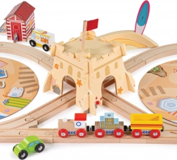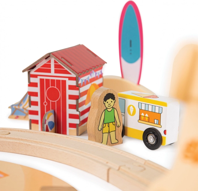 Vydajte sa na slnečné pobrežie s touto tematickou drevenou vláčkodráhou a učte deti, ako správne starať sa o prírodu. Set ponúka 70 dielov vrátane 3-dielneho vláčika, autíčok, pieskového hradu s priejazdom a plážových domčekov. Nechýbajú magnetické výukové dosky na triedenie odpadu, ktoré podporujú jemnú motoriku, poznávacie zručnosti a udržateľný prístup k hre.