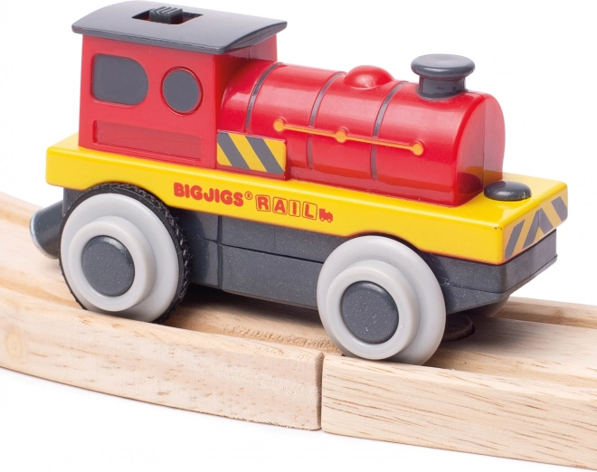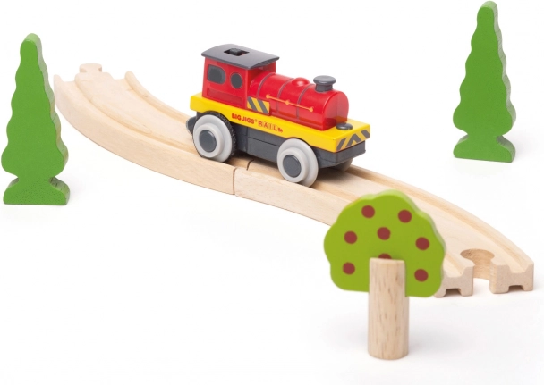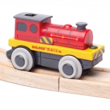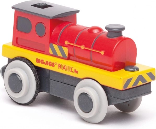 Rozbehnite svoju drevenú vláčkodráhu s elektrickou lokomotívou od Bigjigs Rail. Vďaka batériovému pohonu sviští po koľajniciach, ľahko ťahá vagóniky cez magnetické spriahadlá a vďaka gumovým návlekom na kolesách má plynulý záber bez preklzu. Pevné a odolné prevedenie v atraktívnej červenej farbe a kompatibilita s väčšinou vláčkodráh zaručia hodiny kreatívnej hry.