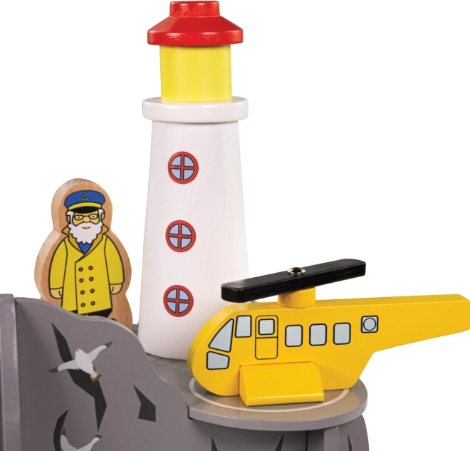 Obohaťte detskú vláčikodráhu o pobrežnú scenériu s majákom a heliportom. Táto drevená súprava ponúka štvorcestný tunel, maják, helikoptéru a 2 figúrky pre nekonečné príbehy a záchranné misie. Vyniká robustným spracovaním, je kompatibilná s väčšinou drevených vláčikodrâh a je vyrobená z zodpovedne získaného dreva s nezávadnými farbami.