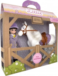 Lottie Jazdkyňa s KoňomLottie je najšťastnejšia, keď môže na svojom vernom snehobielom poníkovi uháňať krajinou a tráviť čas v prírode. Poník sa volá Shelby a Lottie o neho zodpovedne stará. Nevynechá ani jeden tréning, aby na výstave koní vyhrala vysnívaný pohár. Vždy dbá na bezpečnosť a nikdy nevychádza bez elegantnej fialovej prilby. Ako ostatné bábiky z oceňovanej kolekcie Lottie je aj táto realistická a snaží sa deti učiť úprimnému pohľadu na svet.